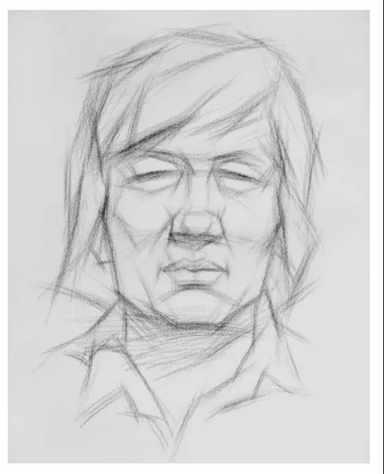 準確畫出明暗交界線,重點刻畫明暗交界線部位,對于明暗區(qū)別比較模糊的地方,從主觀上肯定明暗交界線的位置和大體走向。