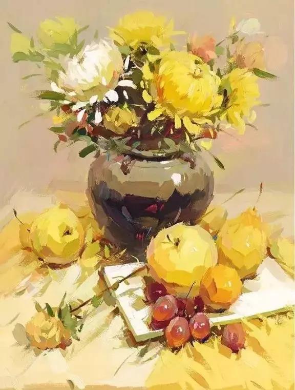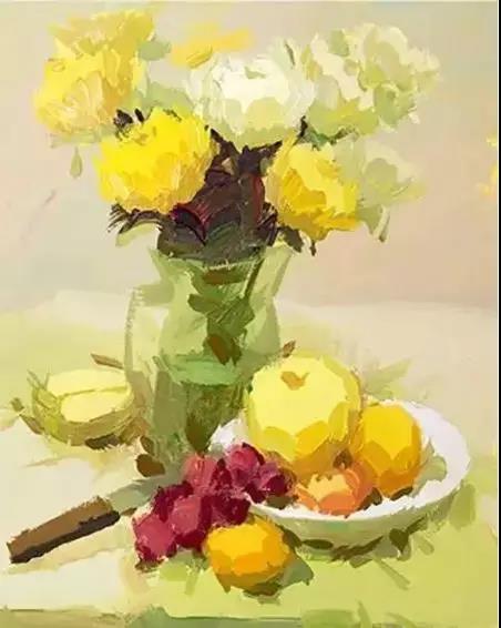 水粉有人會畫的很灰,整體沒有亮的感覺,水粉還是要多用亮色尤其是在水果上,在構(gòu)圖是一定要明確整體的畫面。